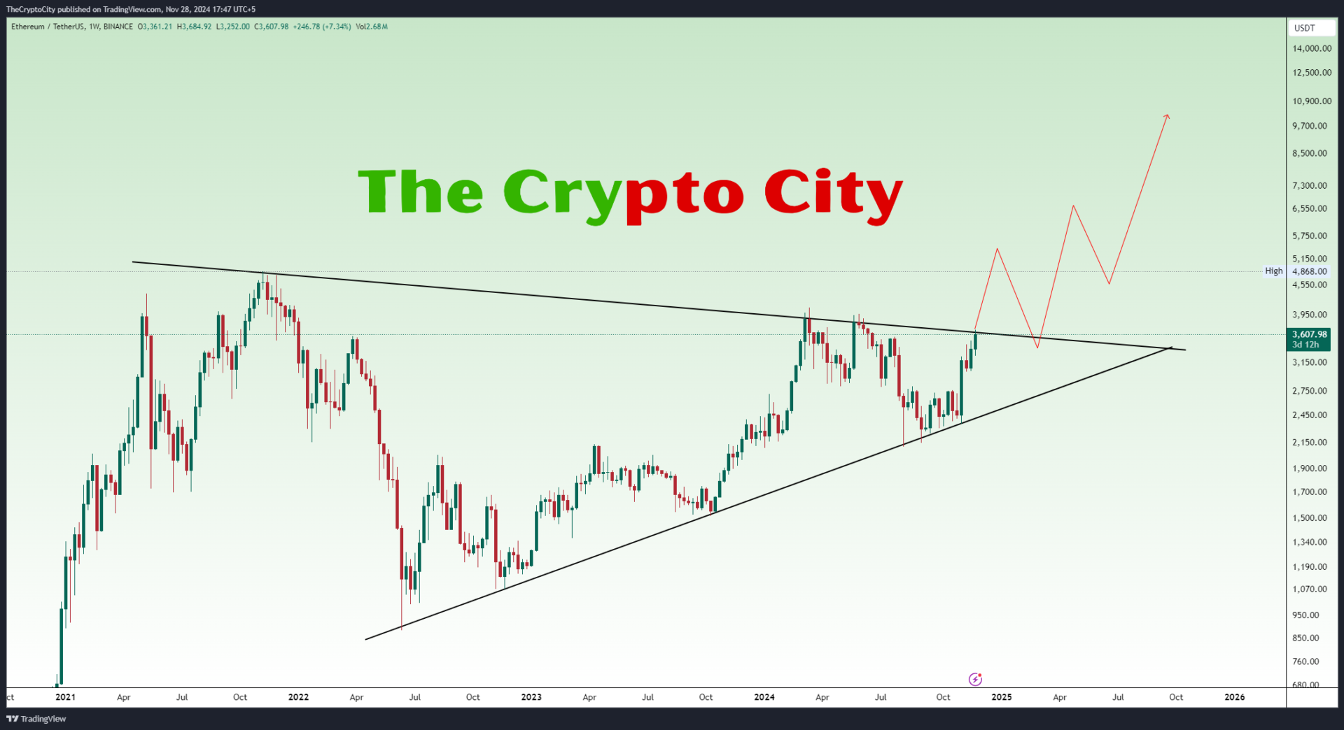 Ethereum ($ETH) has shown strong performance over the past two weeks, signaling growing momentum. However, this is likely just the early stages of a larger trend. Key developments and market dynamics suggest the potential for even more significant growth ahead. Stay vigilant for upcoming catalysts that could drive further gains.